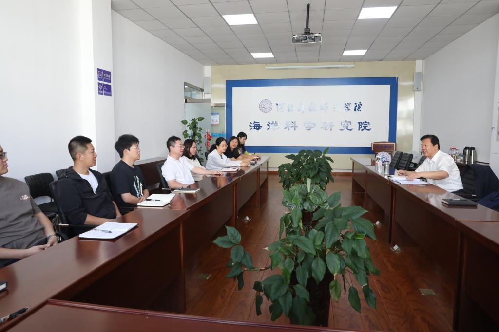 调研过程中,王松走访了河北省海洋动力过程与资源环境重点实验室,听取了实验室基本情况的介绍。中心主任刘志亮汇报了目前承担的科研项目进展以及一系列创新成果。王松与中心科研人员进行了座谈交流,关心大家的研究方向与实际需求,对大家专心科研、努力攻关的态度表示赞许。