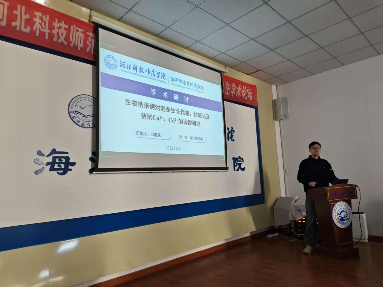 2025年12月20日,河北科技师范学院海洋科学专业第一届研究生学术论坛在我校秦皇岛校区召开,会议采用线上线下结合的方式进行,研究生部负责人及四位校外专家评委、海洋科学专业教师及全体研究生出席了本次学术论坛。